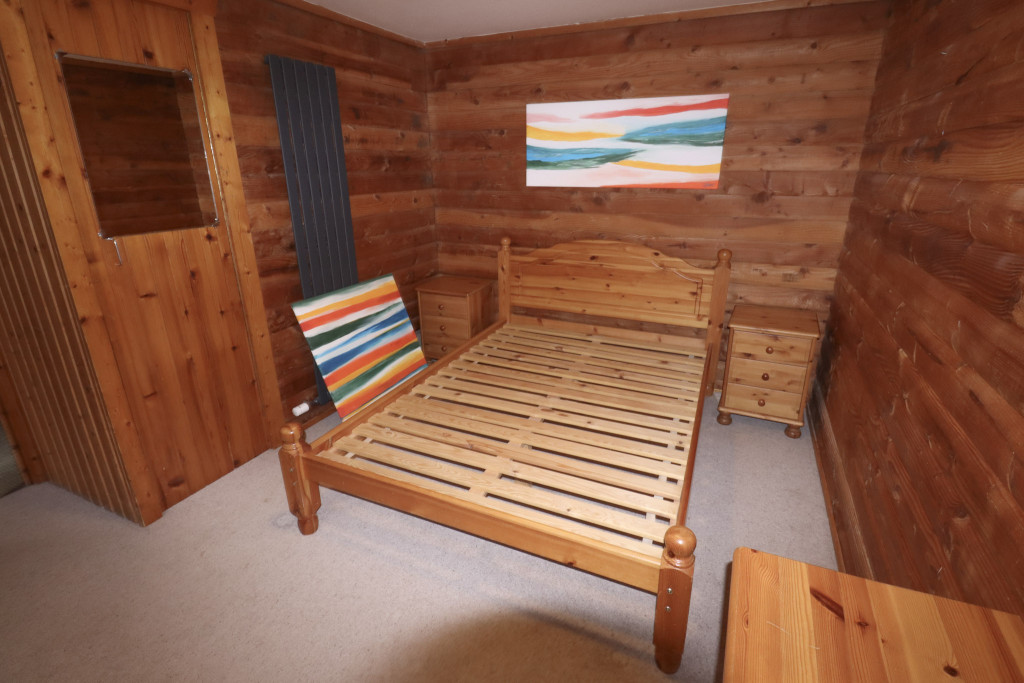 Large double bedroom extending the full width of the lodge with sliding patio doors to balcony; door to bedroom 2; television connection point; smoke alarm; fitted carpet.