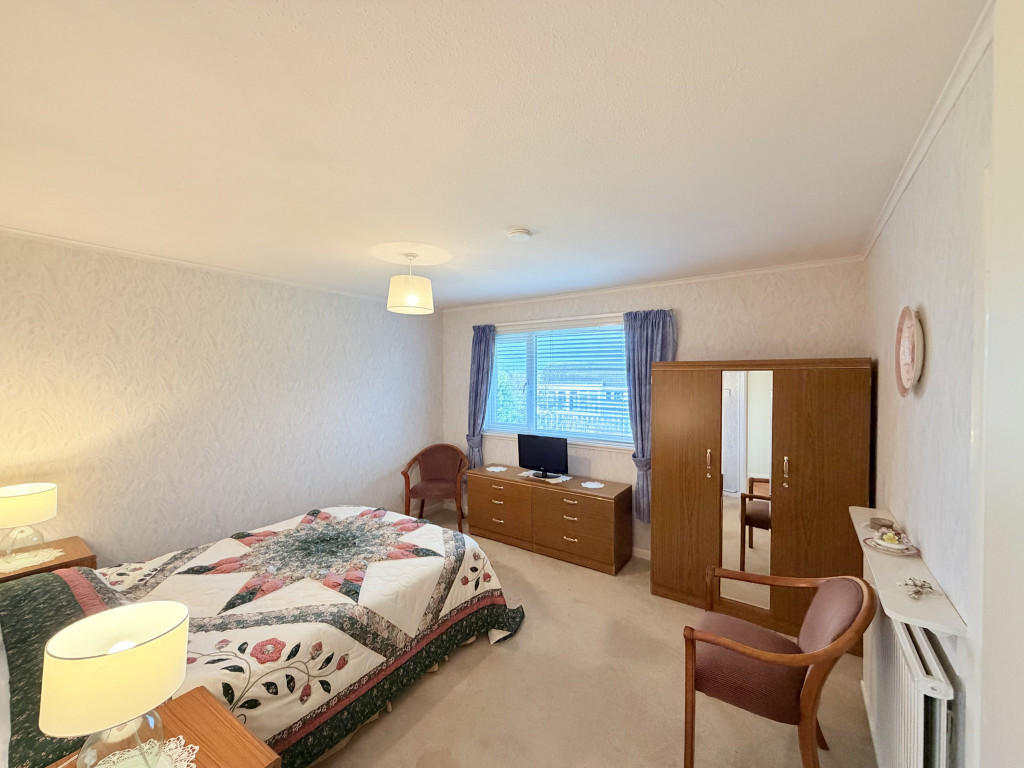 Double bedroom with window to the rear overlooking the garden and beyond; built-in double wardrobe with hanging space and shelf above; coving; smoke detector; fitted carpet; radiator.