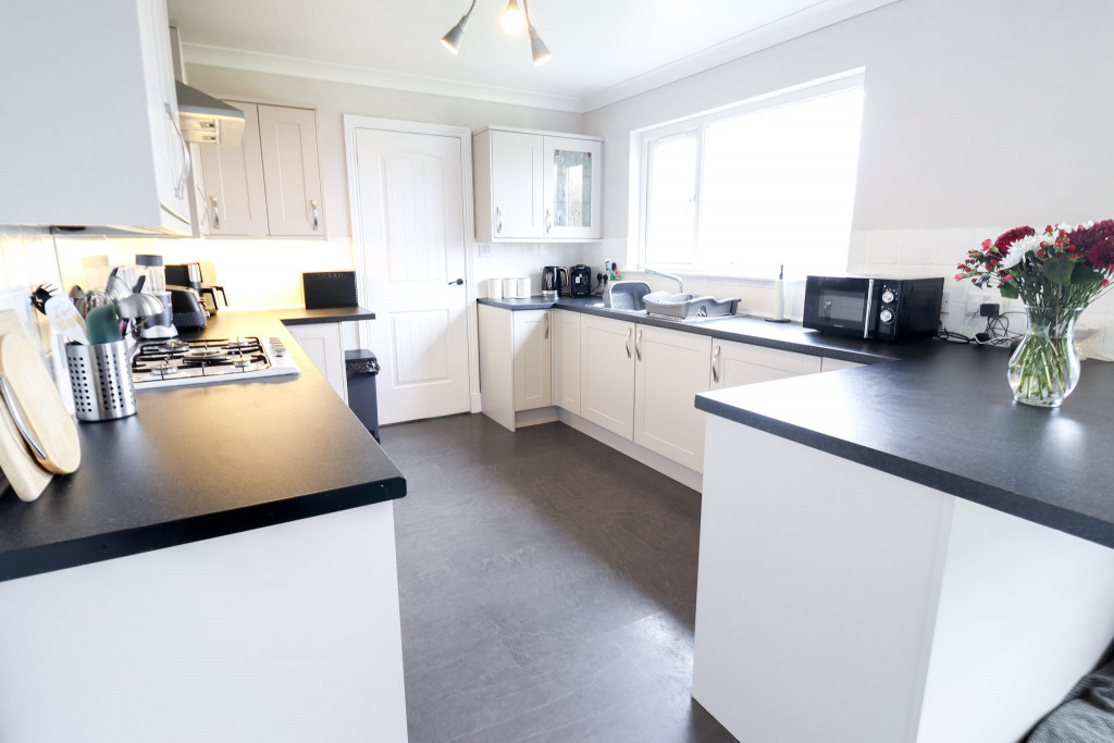 The accommodation is arranged over one floor and comprises a spacious and light lounge, modern open plan dining kitchen with patio sliding doors to the rear garden and an adjoining utility room which also has garden access. There are four double bedrooms which include a master suite with a double aspect and a modern fitted en-suite shower room. A family bathroom completes the accommodation.