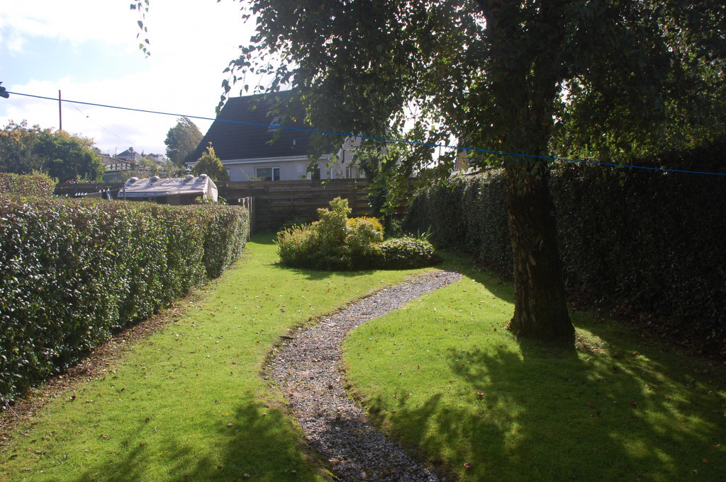 Attractive, sizeable rear garden laid to grass with a gravelled pathway, two assorted flower/shrub beds, washing line and a mature tree. The area to the side of the property is laid to gravel with a paved seating area and access to the cellar and the wooden side gate to Queen Street.