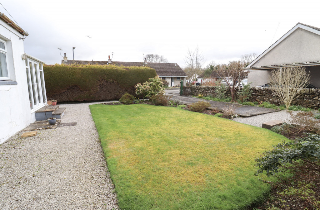 Double metal gates at the rear of the property give access to a driveway providing off street parking. The attractive gardens are laid to lawn with lovely assorted borders of shrubs and flowers. A gravel pathway leads to the conservatory and a side gate, with a raised corner bed, and to the front garden. There is a sheltered seating area located at the other side of the property.