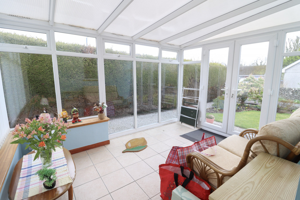 A delightful addition to the property. UPVC double glazed on three sides and French doors to the garden; tiled flooring.