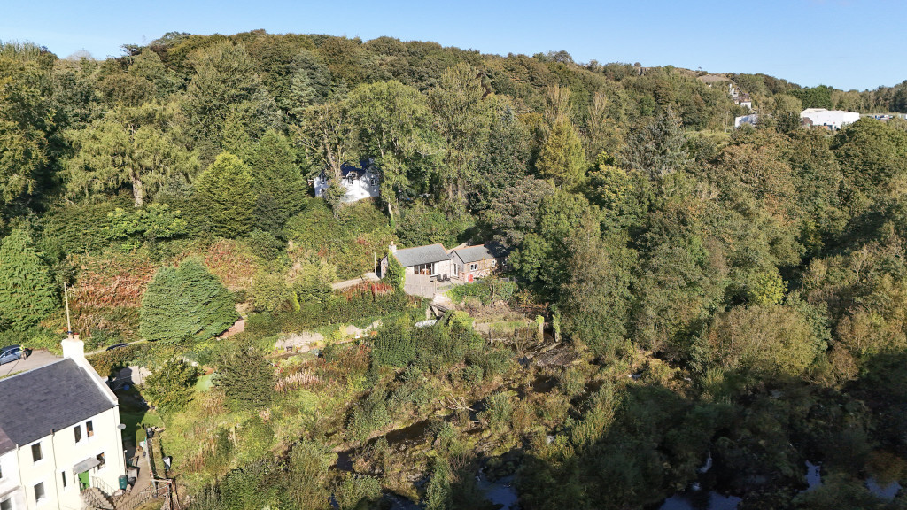 The sunny aspect rear garden enjoys a beautiful open outlook towards the River Dee, while maintaining a high degree of privacy. It is laid primarily to lawn, with borders of wood and metal fencing. Flower beds. Mature tree. Raised area of wooden decking beside lounge/dining kitchen. Bench with wood store below. Barbeque. Calor gas tanks. 4 wall lights. Beyond the rear garden’s boundary, a former sluice gate can be viewed. This was formerly used by the nearby Mill, which is now a neighbouring residential home.